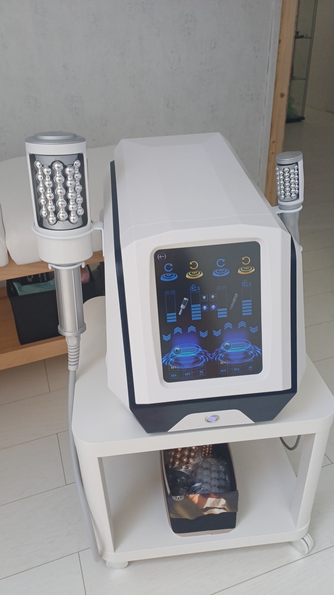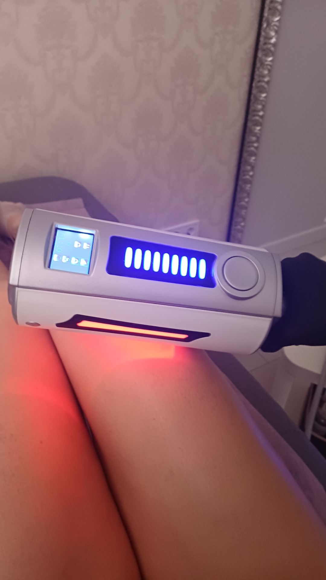 A kezelendő testrész/testrészek felmérése, cél meghatározása: ezek alapján, személyre szabottan kerül kiválasztásra a kezelőfej, forgási intenzitás és fényterápia.